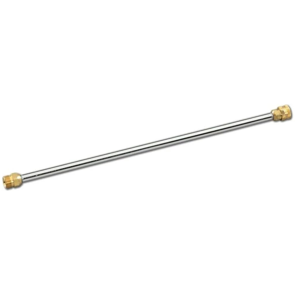 Chrome plated design with brass connections for extended life. Work with pressure washers rated up to 3100 PSI and compatible with most guns. Connects to guns with female M22 connections. Quick-change connector.